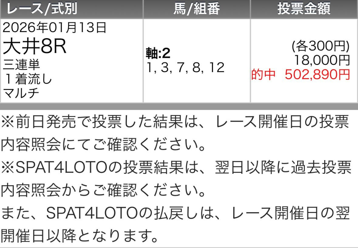 2026年2週連続的中で先週も30万越えの的中! この時点で2026年収支70万以上だから今年は確定した勝利決定!