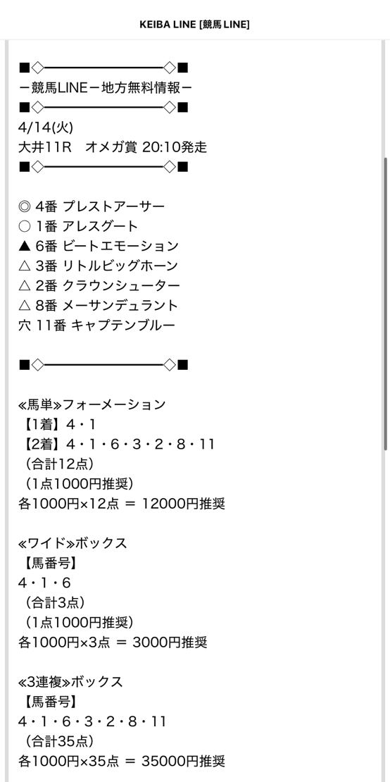 【優良】KEIBALINEへのクチコミ
