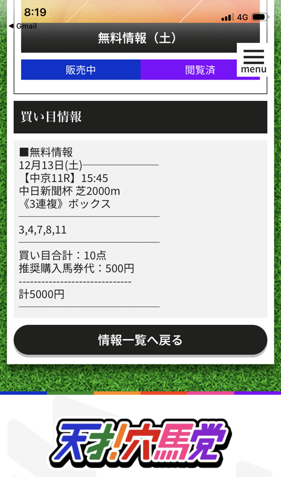 明日も重賞無料で出るよね?楽しみにしています!